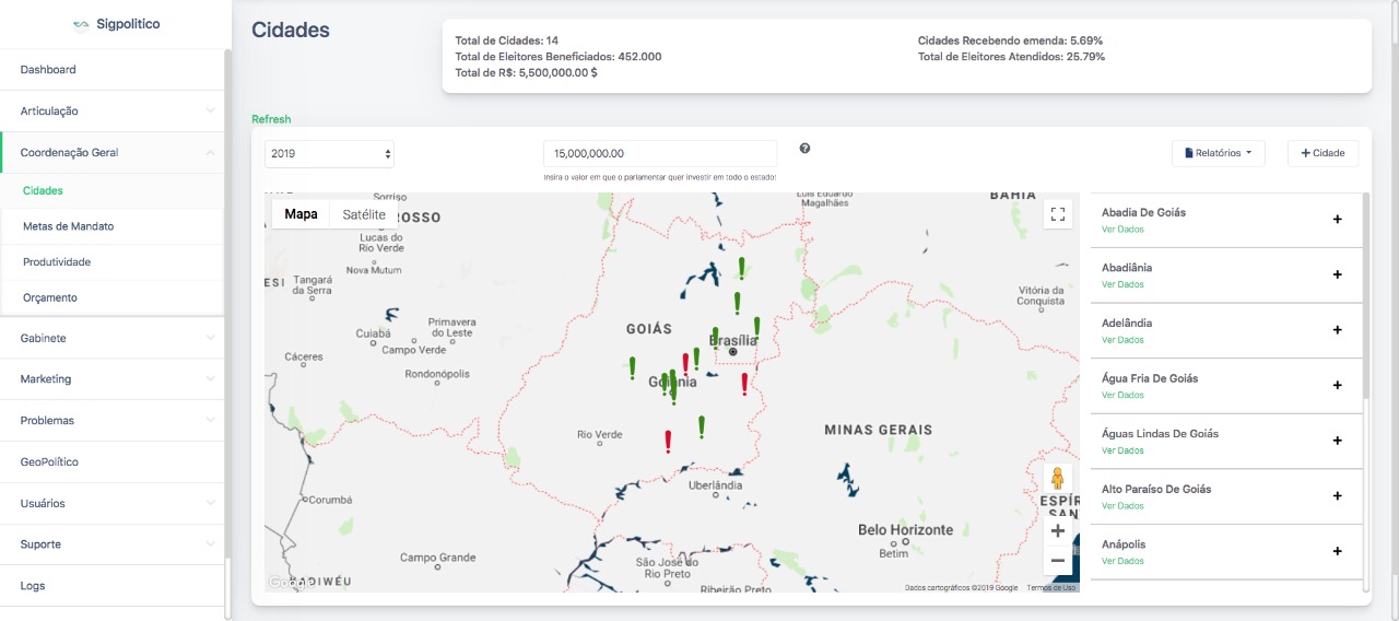 É uma ferramenta inovadora e essencial à atividade parlamentar, disponibilizando uma média de votos recebidos em cada cidade do estado, com visualização diretamente mapeada, a fim de mostrar a real força do parlamentar em cada localidade.